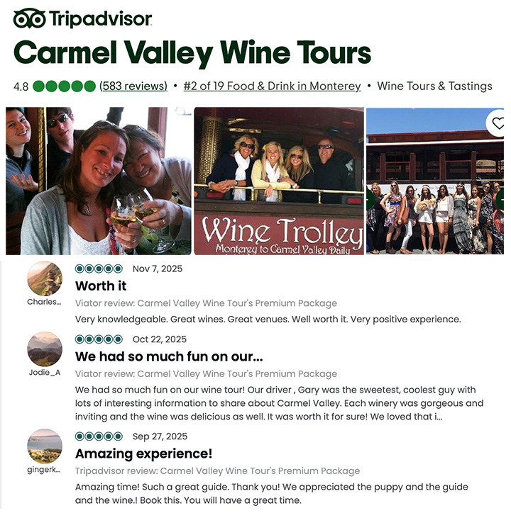 5-Hour Carmel Valley Wine Tour - Tour Time: 11:00 AM – 4:00 PM